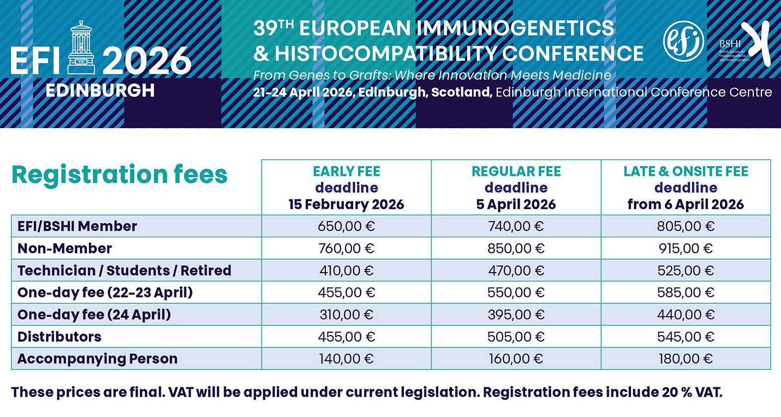 For group registration (more than 10 participants), please contact the EFI 2026 Secretariat at efi2026@guarant.cz
